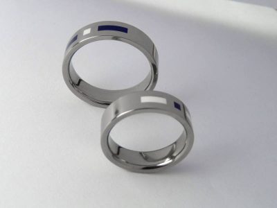 Gyűrű – titán homorú karikagyűrű kék-fehér colorittal 03