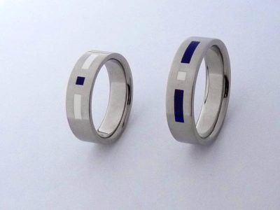 Gyűrű – titán homorú karikagyűrű kék-fehér colorittal 04