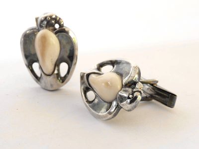 Mandzsetta – ezüst szarvasgyöngyfog sólyom plasztika