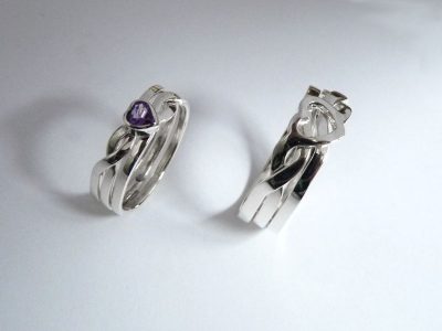 Gyűrű – ezüst 3-as ördöglakat szív ametiszttel