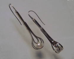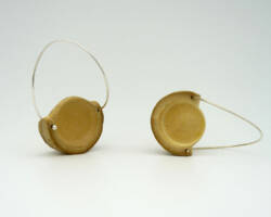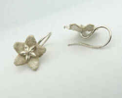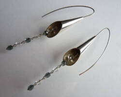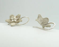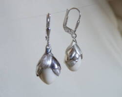 A vadász ékszereknél sokszor csak a szarvas gyöngyfogának tetejét használják. Ezeknél a fülbevalóknál, viszont olyan két pár fogat választottam a megbízóm trófeái közül, amelyeknek vége lapított csepp formájú volt. A foglalatok plasztikáját a természet, az erdő ihlette, úgy mint a rügy, bimbó, medvehagyma vagy a gyöngyvirág.