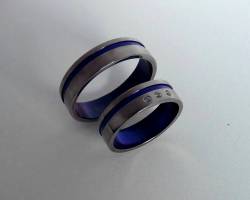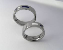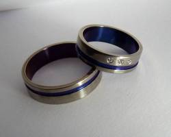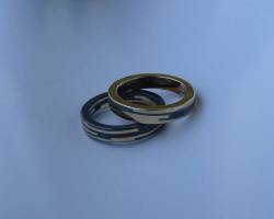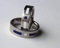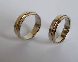 A képen látható gyűrűk a Mokume Gane technikához hasonlóan készültek, ugyanakkor itt egy geometrikus mintázat létrehozása volt a cél. A férfi és a női gyűrű mintázata egymás inverzei.