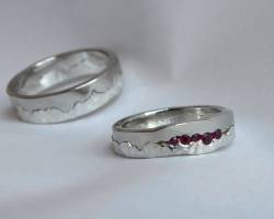 Ezeknél a gyűrűknél az ifjú pár egyik fele a hagyományosabb karikagyűrűket, míg a másik a szögletes formákat részesítette előnyben. Végül mindkettőjük számára tetsző megoldás született ezekben a gyűrűkben.
