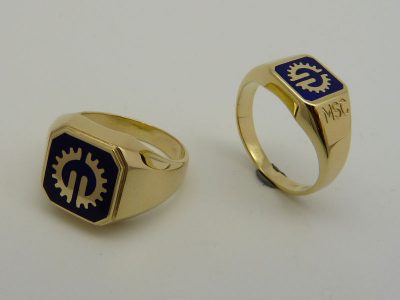 GSZ női és férfi arany gyűrű zománccal